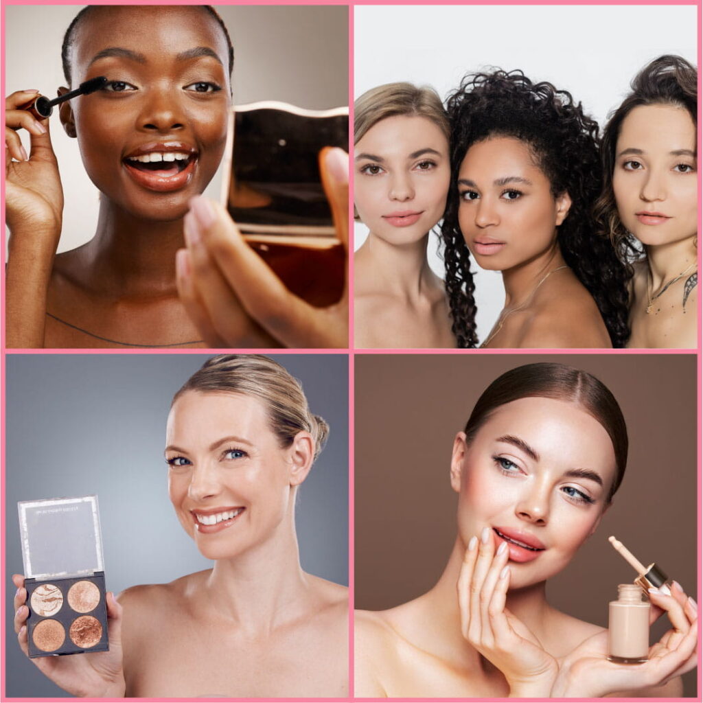 Face: primers, foundations, powders, blush, bronzer, contour, highlighter, setting products